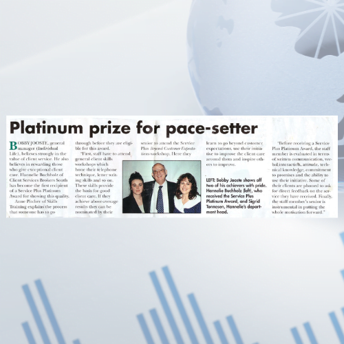 I have had the pleasure of having Hannelie Jacobs a mentor during her time as manager of our member services department. I entered company as a junior and immediately I felt at home under her mentorship.