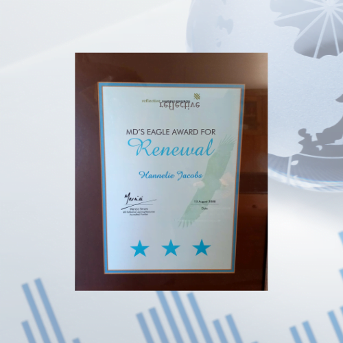 I joined Reflective Learning Resources in May 2008 and worked with Hannelie until December 2008. She was my manager, coach but also acted as a mentor.